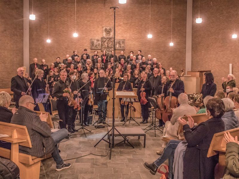 An dieser Stelle sei noch einmal auf die überragende Arbeit von Annette Schmidt-Höngen hingewiesen. Drei Chöre zu einem homogenen Klangkörper zu vereinen, im Dirigat dem Chor und Orchester Phrasen, rhythmische Besonderheiten und Textgestaltung überzeugend zu vermitteln und das Ganze zu einem Guss zusammenfließen zu lassen, erfordert hohen Respekt. Respekt gebührt aber auch den Solistinnen und Solisten, dem Orchester, den beiden Erwachsenenchören und dem VoiceKamp samt seinem Leiter Max Jenkins. Diese hoch konzentriert und mit vollem Einsatz singenden Jugendlichen haben sicherlich nicht zuletzt zum außergewöhnlichen Glanz des Chores beigetragen.