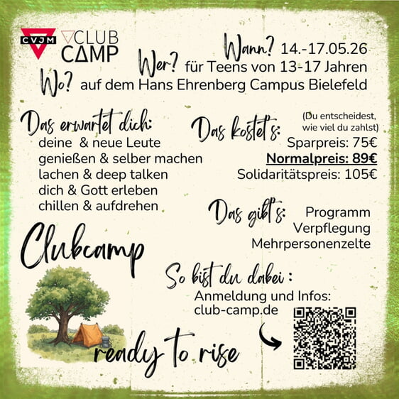 Wann? 14.-17.05.26 Wer? für Teens von 13-17 Jahren Wo? auf dem Hans Ehrenberg Campus Bielefeld