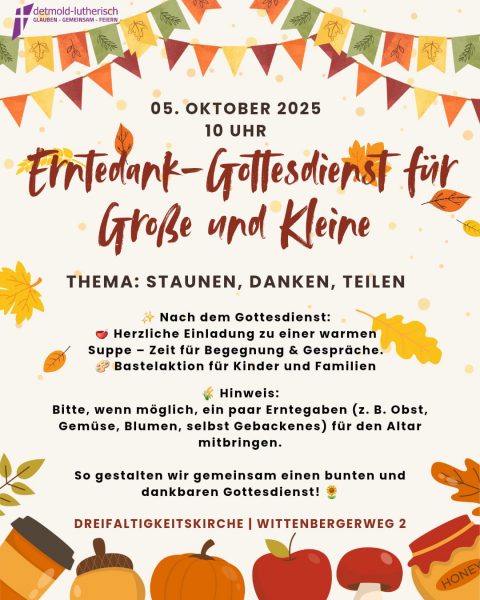 Abend der Kirchen und Kneipen 27. September 2025 zwischen 17:30 und 21:30 Uhr in der Martin-Luther-Kirche 2025 feiert der Lippische Sängerbund e.V. sein 150-jähriges Bestehen. Schon lange vor der Gründung des Lippischen Sängerbundes hat es im früheren Land Lippe Chöre gegeben. Aus Anlass der Einweihung des Hermannsdenkmales im Jahre 1875 durch Kaiser Wilhelm I. gründeten…
