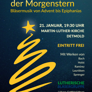 Nachweihnachtliches Bläserkonzert in der Martin-Luther Kirche Detmold Zu einem nachweihnachtlichen Blechbläser-Konzert lädt die lutherische Kirchengemeinde am Sa., den 21. Januar 2017 um 19.30 Uhr in die Martin-Luther Kirche ein.