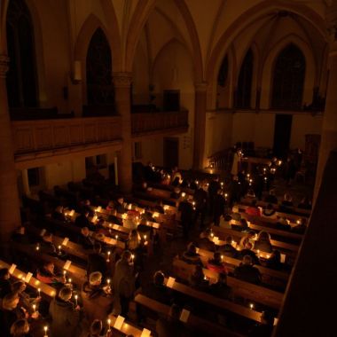 Betritt man den großen Kirchenraum der Martin-Luther-Kirche, fällt der Blick, angezogen durch die Farbigkeit, in den Altarraum, auf die großen wunderbaren Chorfenster und die darunter angeordneten Paramente – die Tücher, mit denen der Altar, die Kanzel und das Lesepult geschmückt sind. Sie „bereiten den Tisch zum Gottesdienst“ (lateinisch: parare – bereiten, mensa – der Tisch).…